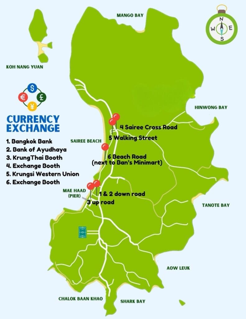 In addition to banks, you’ll find numerous currency exchange booths scattered around the island, particularly in popular tourist areas like Sairee Beach. These booths are convenient and usually open longer hours than banks, making them a popular choice for travelers.